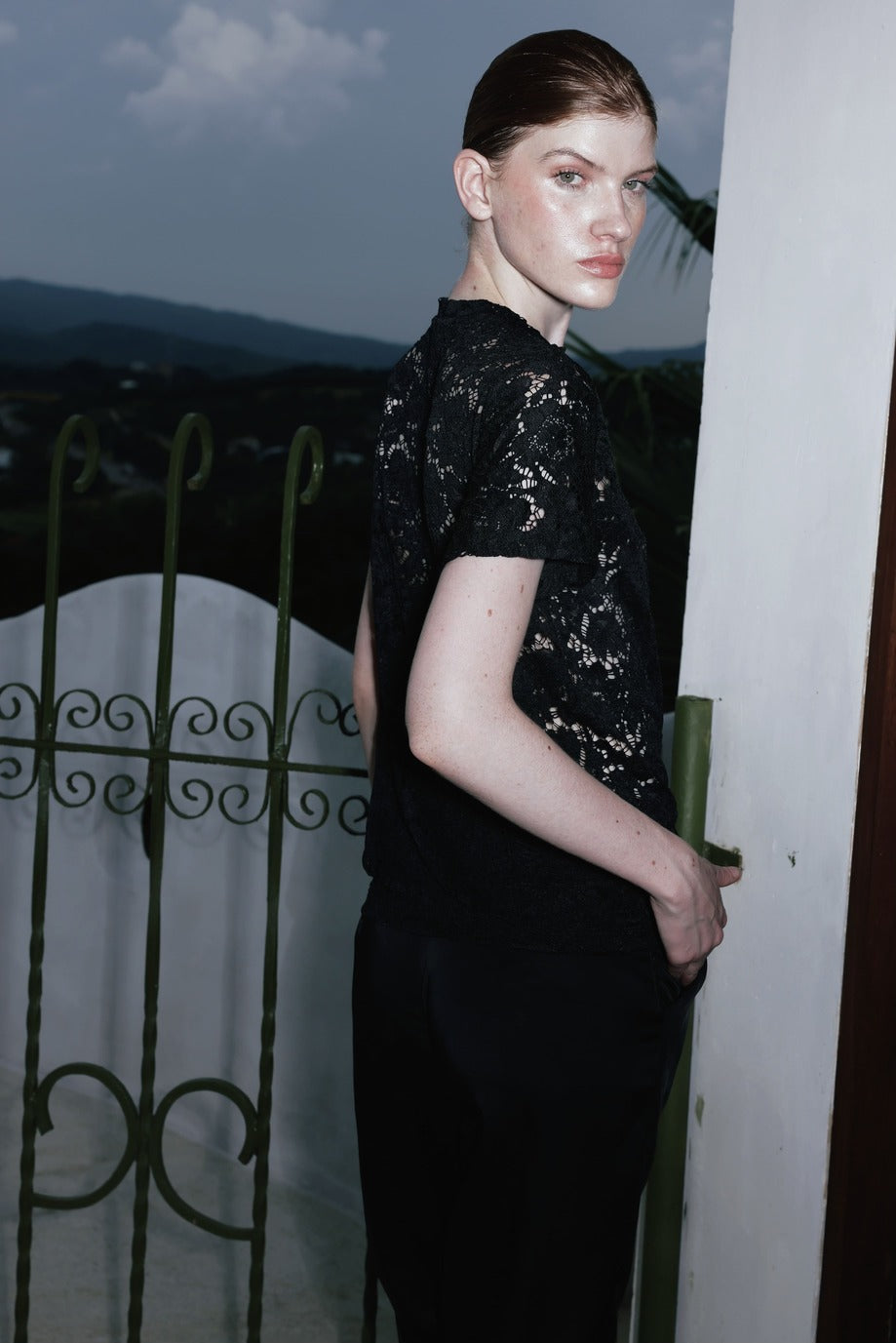 Blusa de encaje strech con mangas. Pefecta para combinar con pantalones, jeans o shorts.